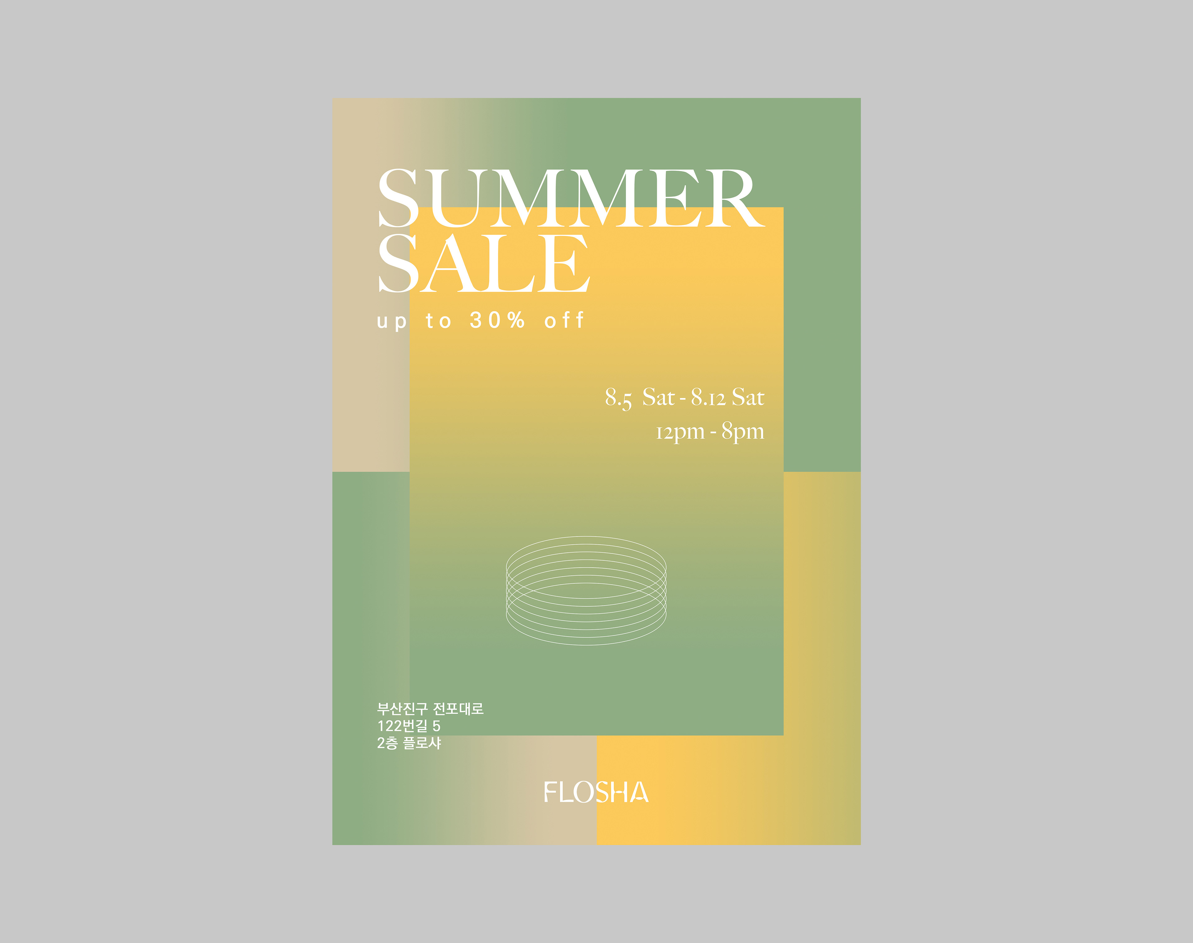 여름의 산뜻함이 어우러진 시즌 세일 포스터입니다.