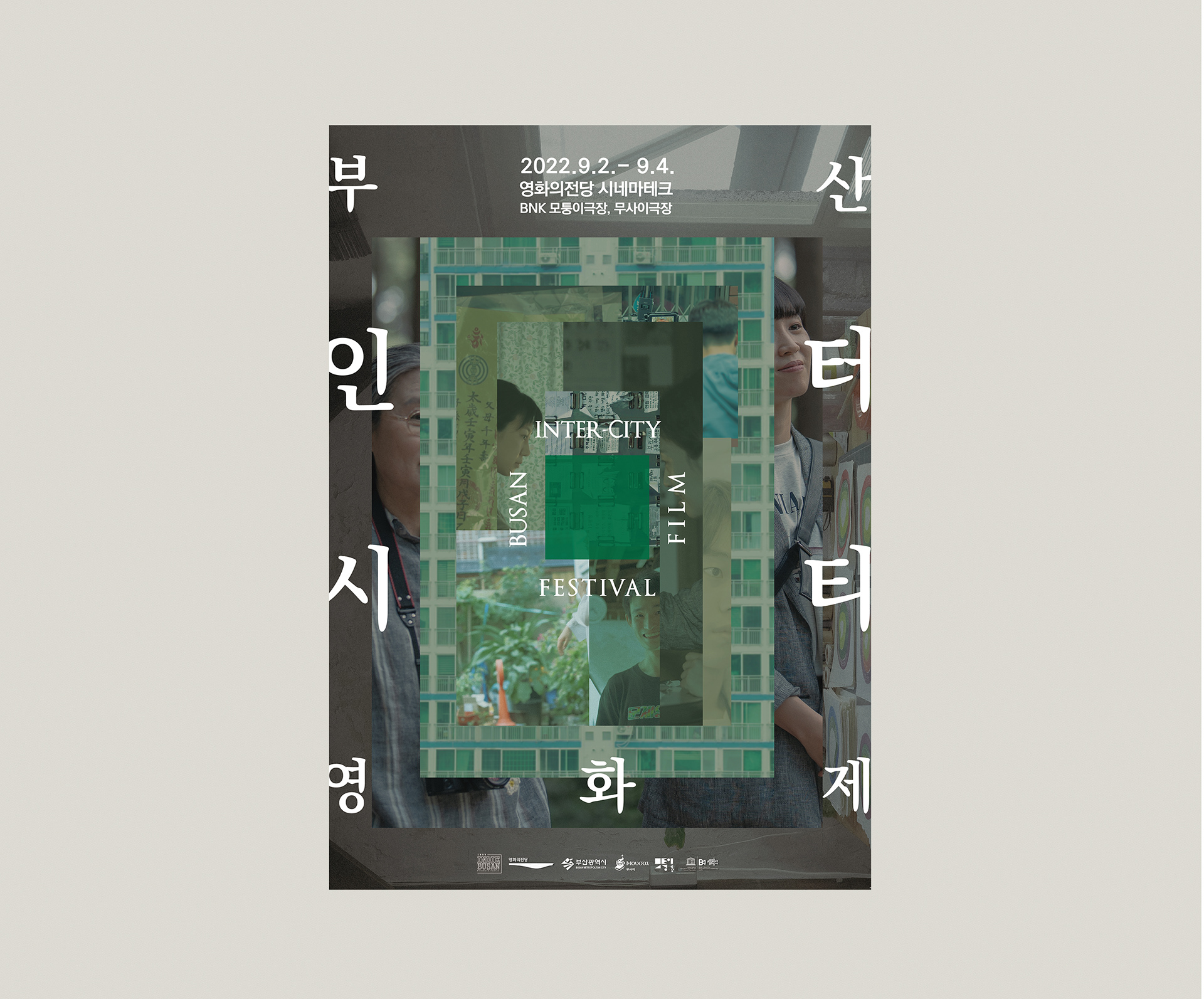 양쪽 가장자리의 큰 텍스트는 영화제의 존재감을 확실히 드러내며,
