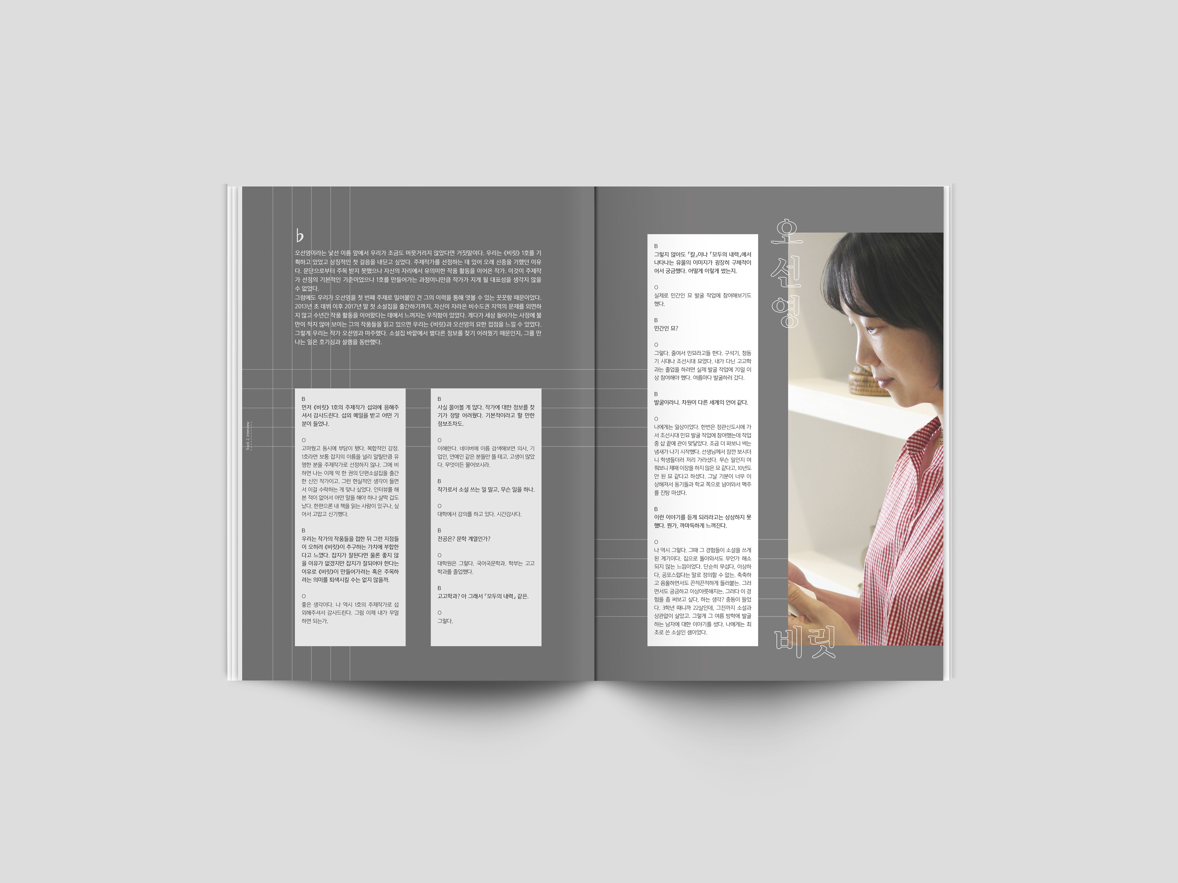 소설 속 이미지들을 해체하고 조합하며, 낮고 작지만 단단한 목소리들을 시각화했습니다.