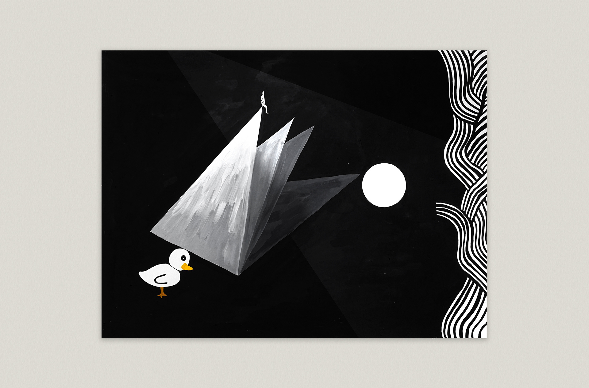 그 속에 조용히 자리한 오리는 무게를 덜어내는 위트이자,