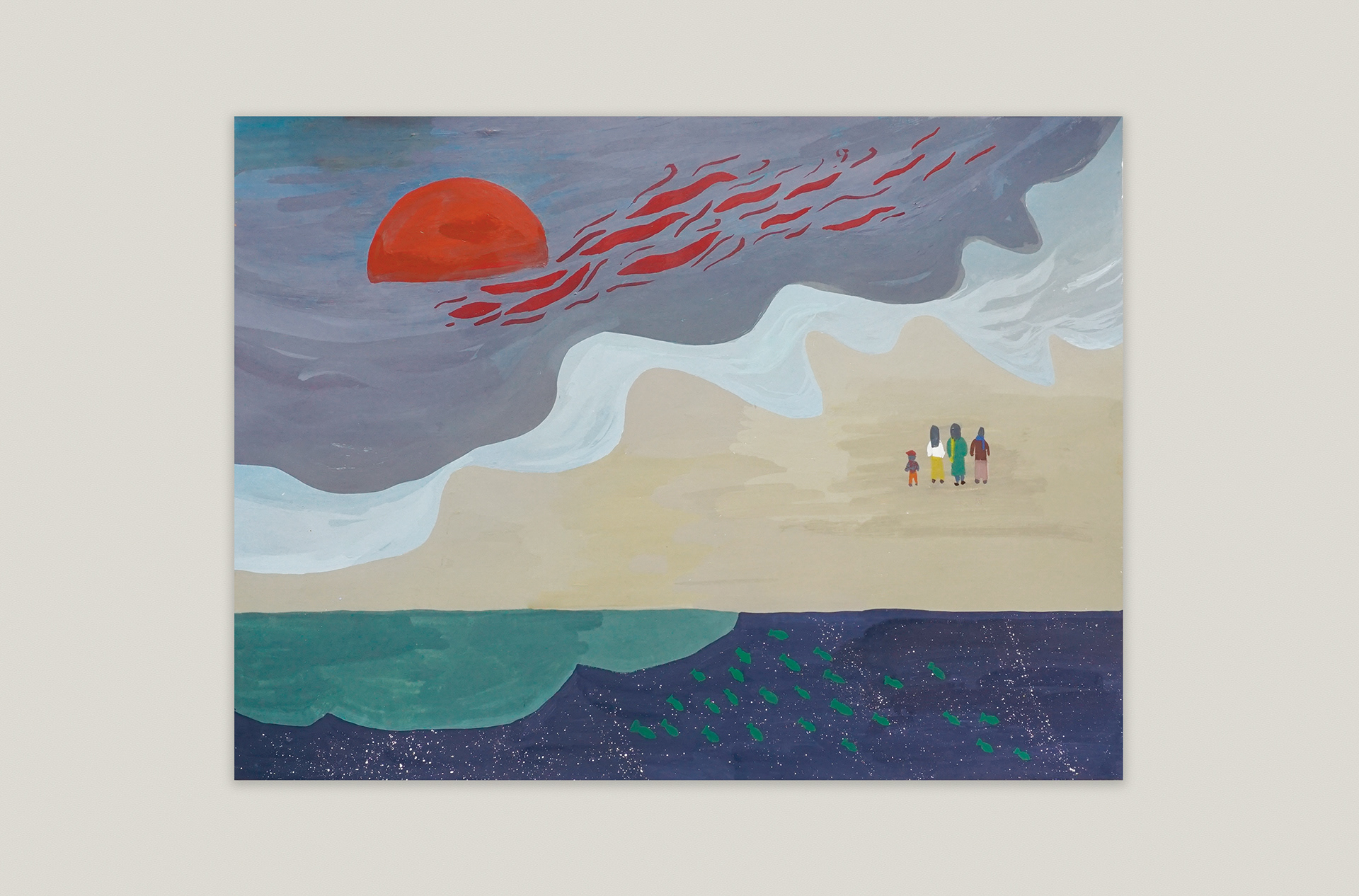여성들의 시선은 거꾸로 뒤집힌 물속과 우주를 지나 흐릅니다.